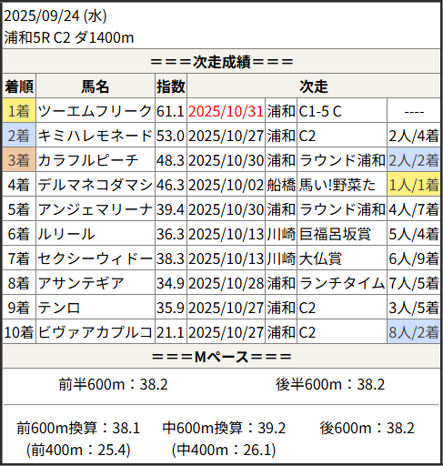2025/10/31 浦和4R C2-10 C2-11:結果