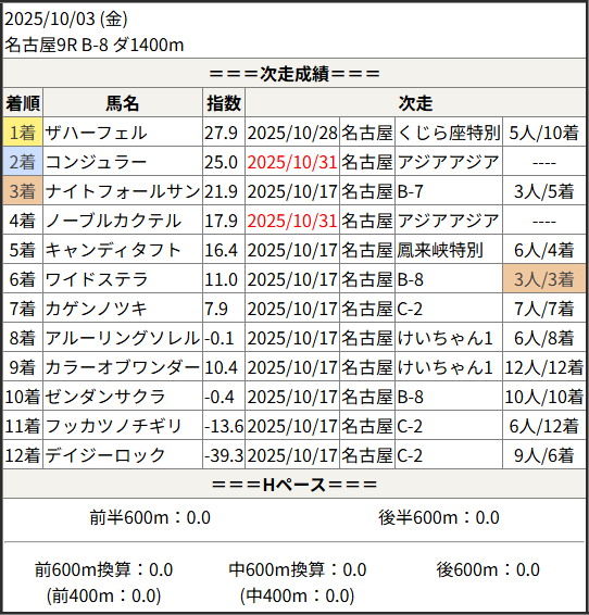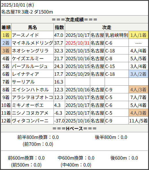 2025/10/31 名古屋3R C-7:結果