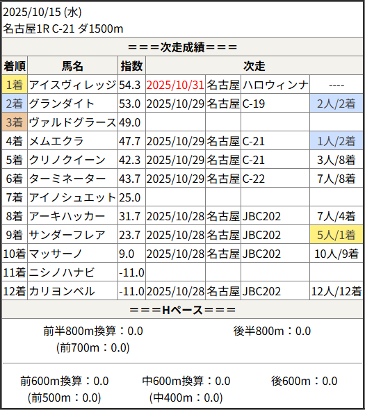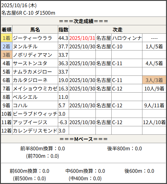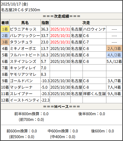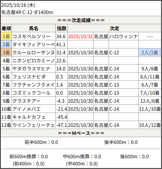 2025/10/31 名古屋4R C-6:結果