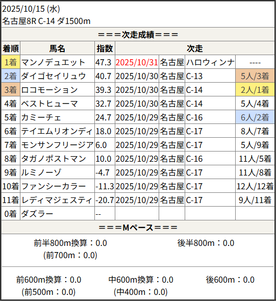 2025/10/31 名古屋10R ハロウィンナイト特別:結果