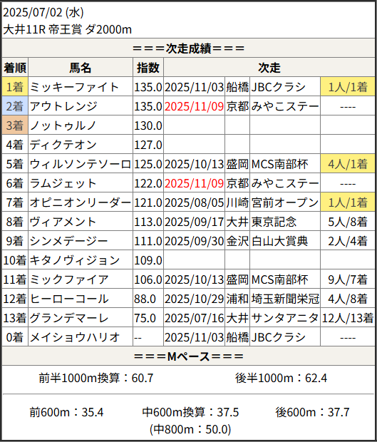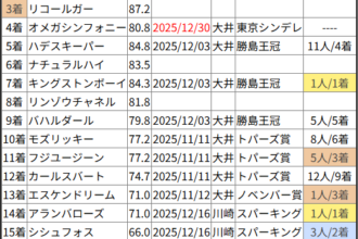 今回のメンバー相手に通用するかは、スピード指数表と合わせてご覧下さい。