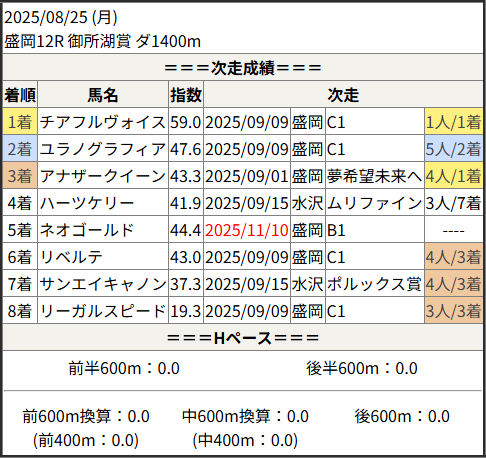 Home / 予想データ / 次走好走 / 2025/11/10 次走好走馬の目立つ組出身