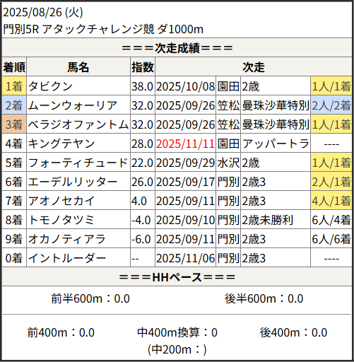 2025/11/11 園田5R 野島断層ダッシュ:結果