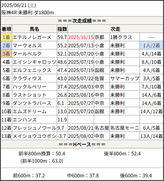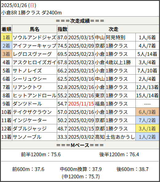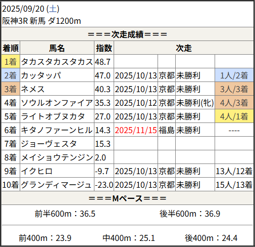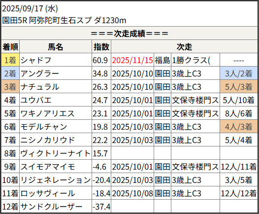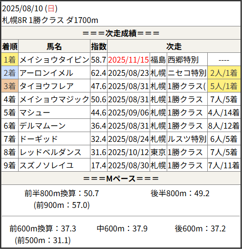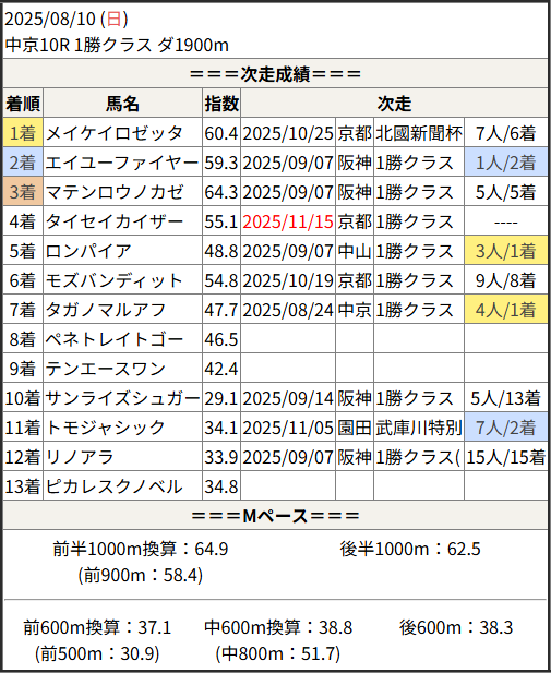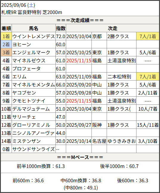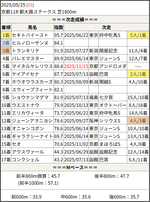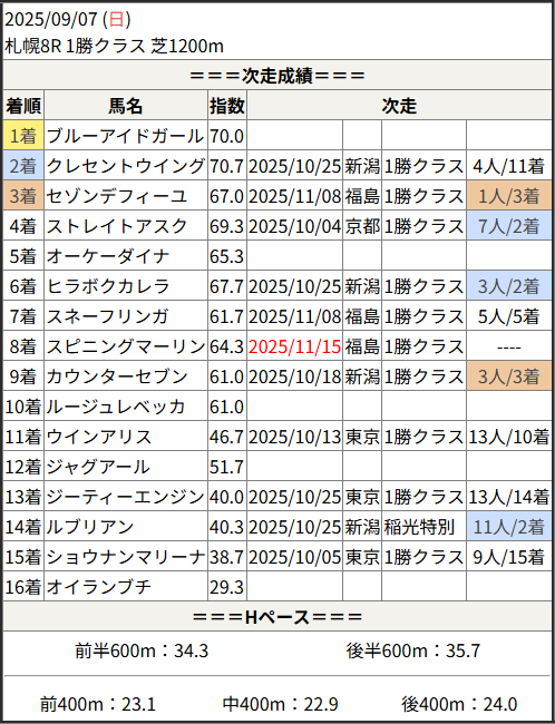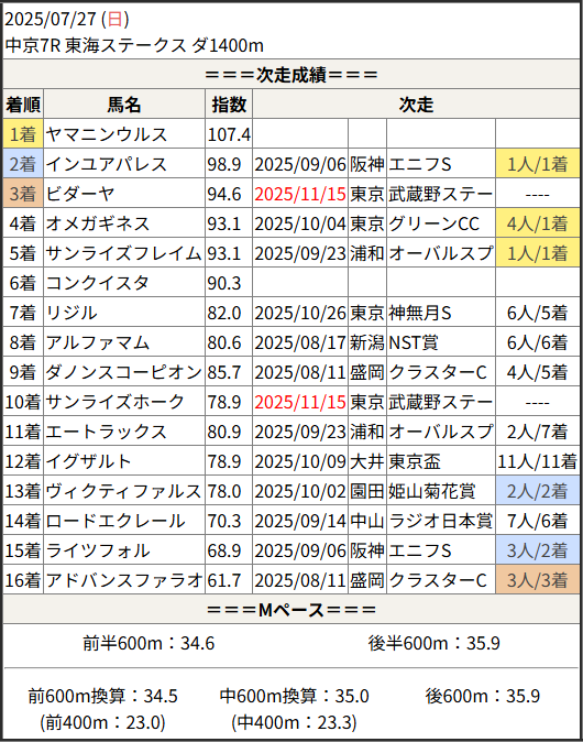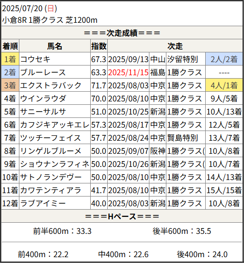 今回のメンバー相手に通用するかは、スピード指数表と合わせてご覧下さい。