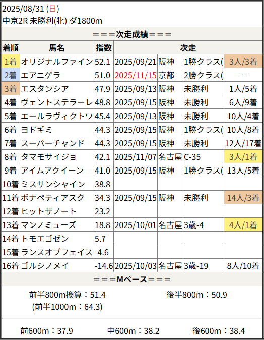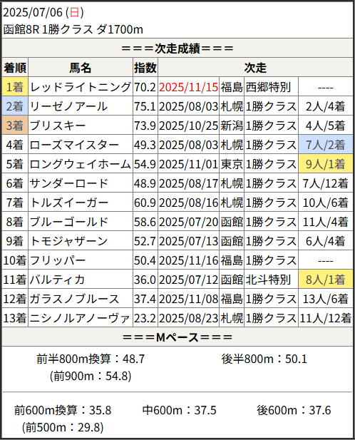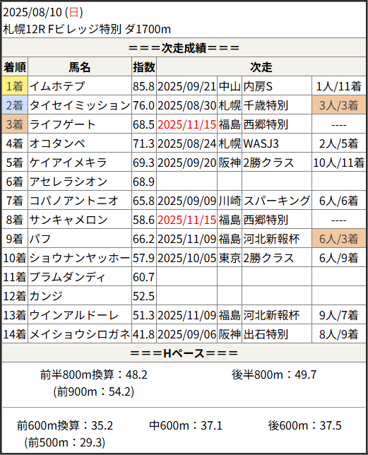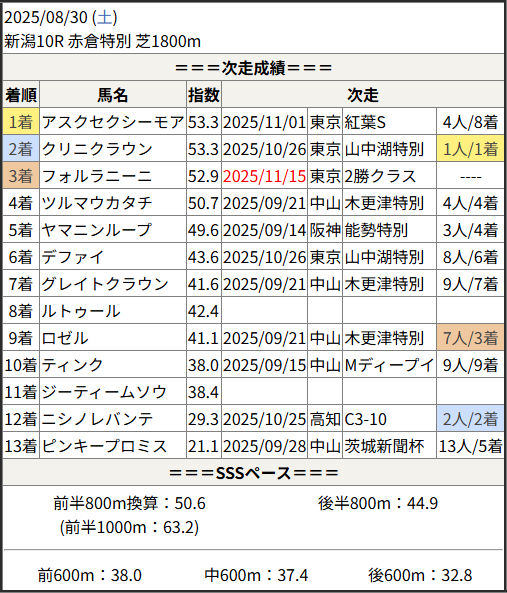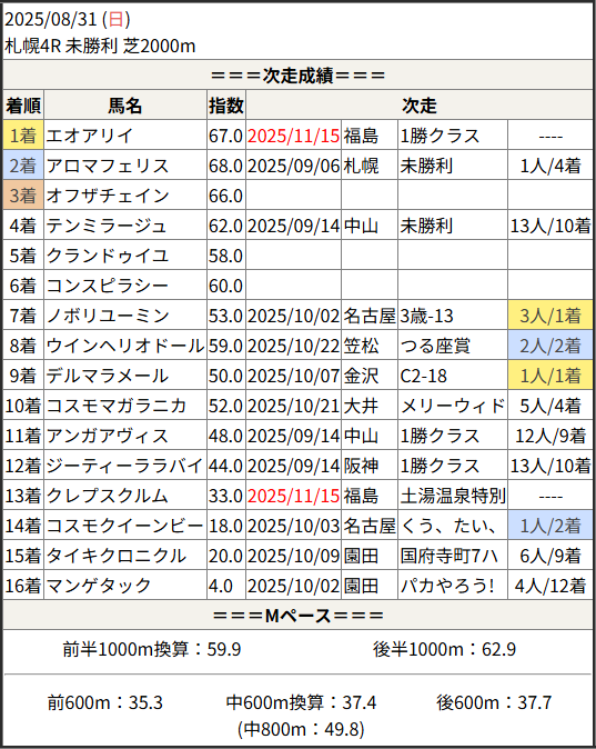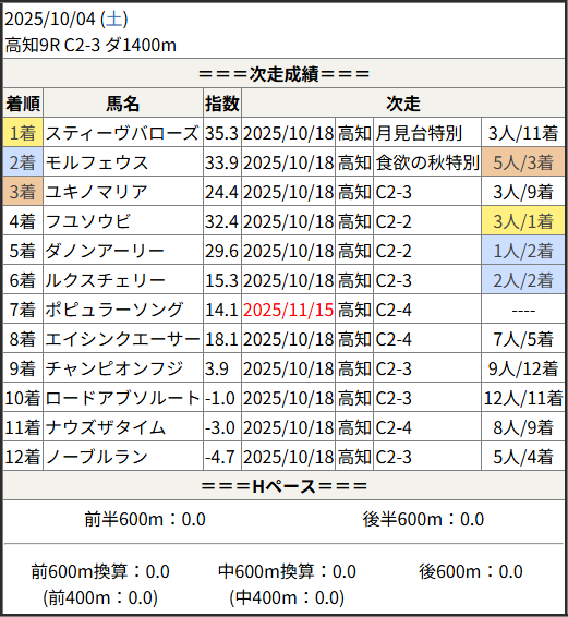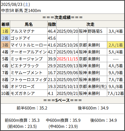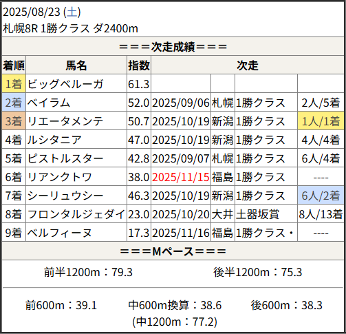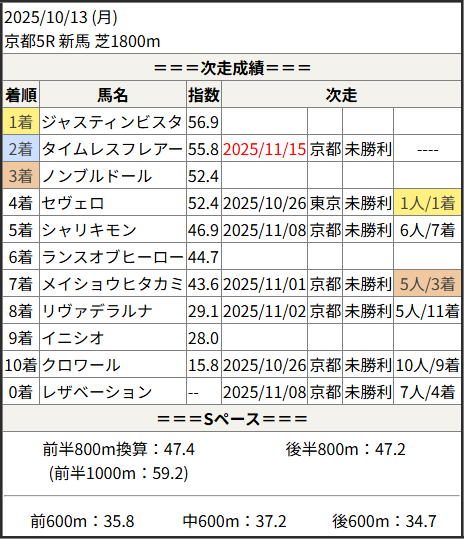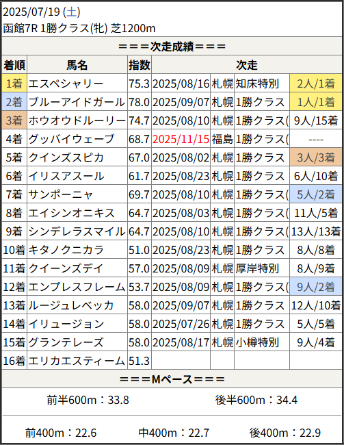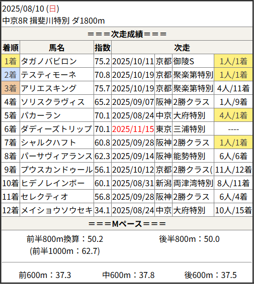 今回のメンバー相手に通用するかは、スピード指数表と合わせてご覧下さい。
