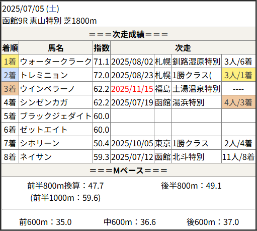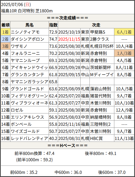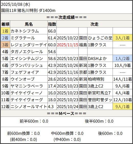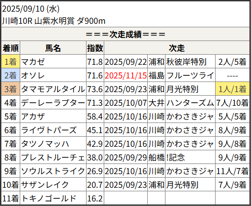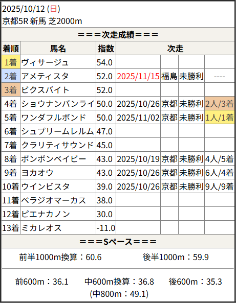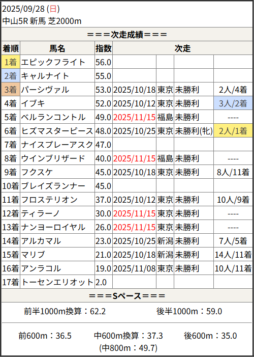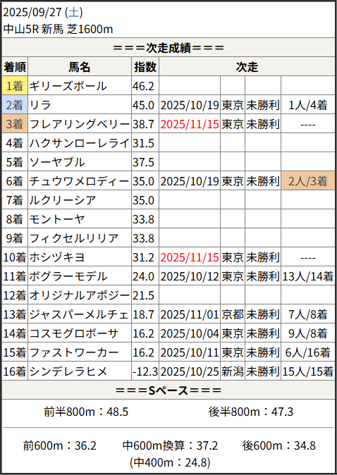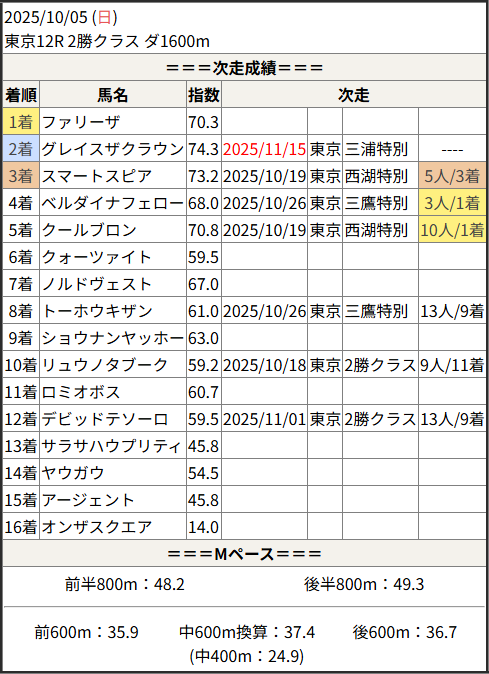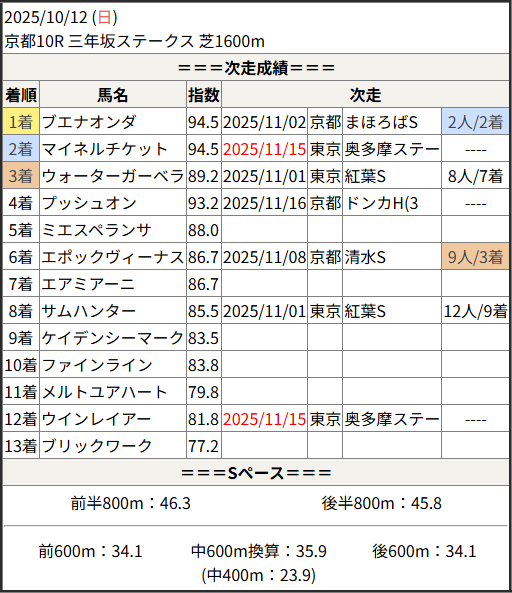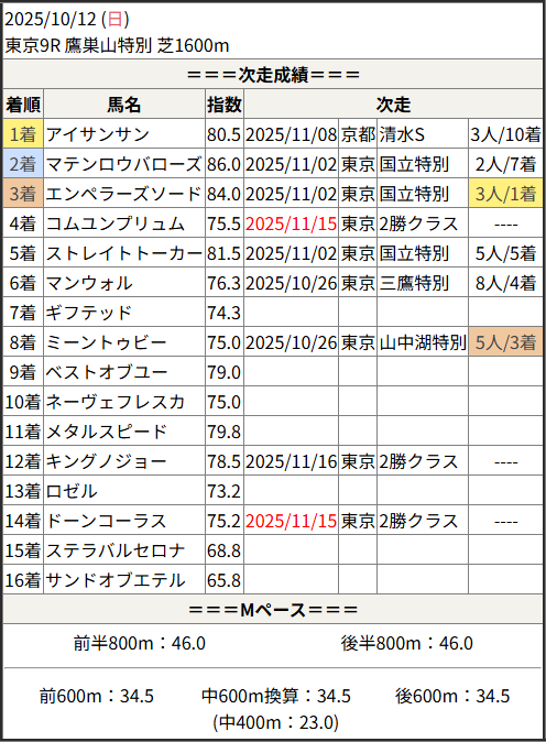 2025/11/15 東京10R 奥多摩ステークス:結果