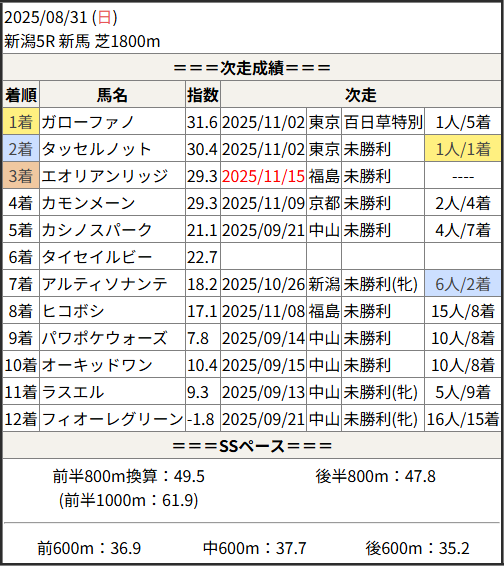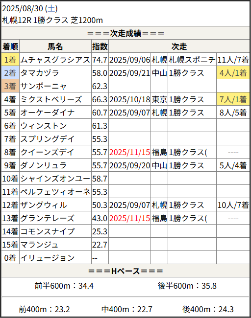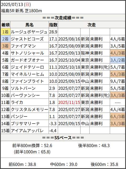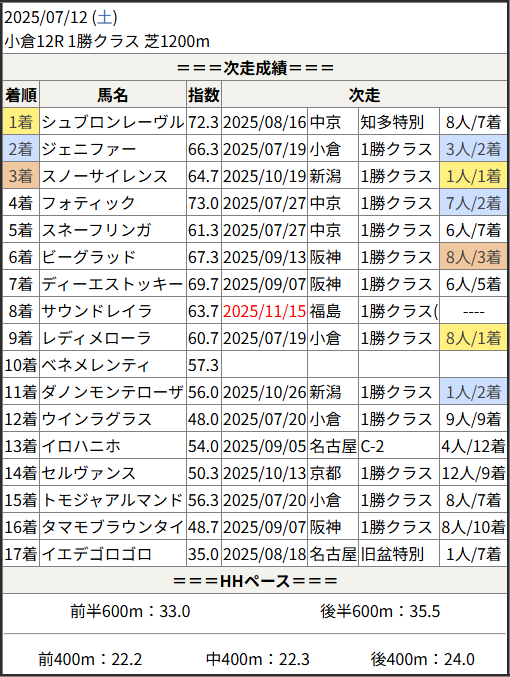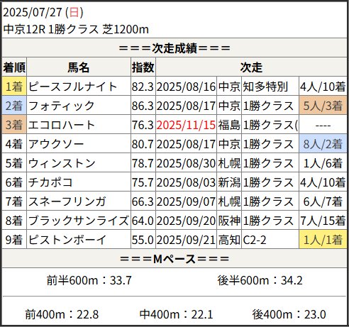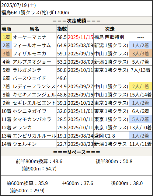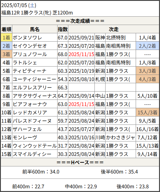 2025/11/15 福島12R 1勝クラス(牝):結果