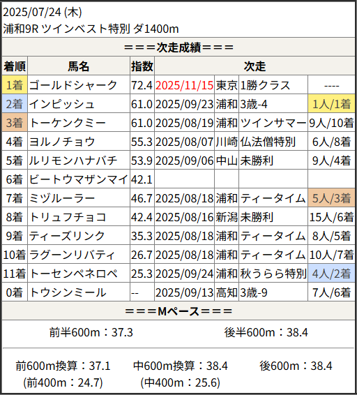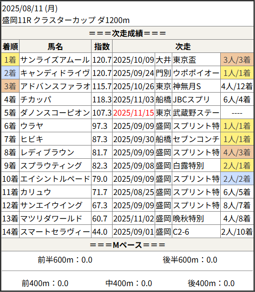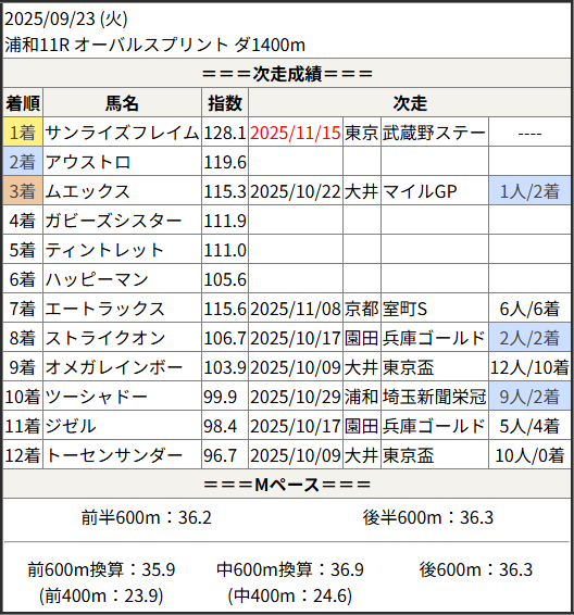 2025/11/15 東京11R 武蔵野ステークス:結果
