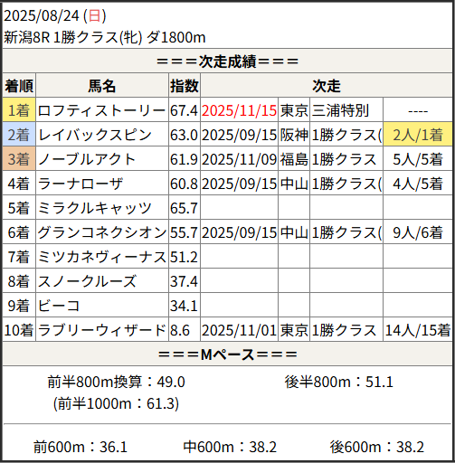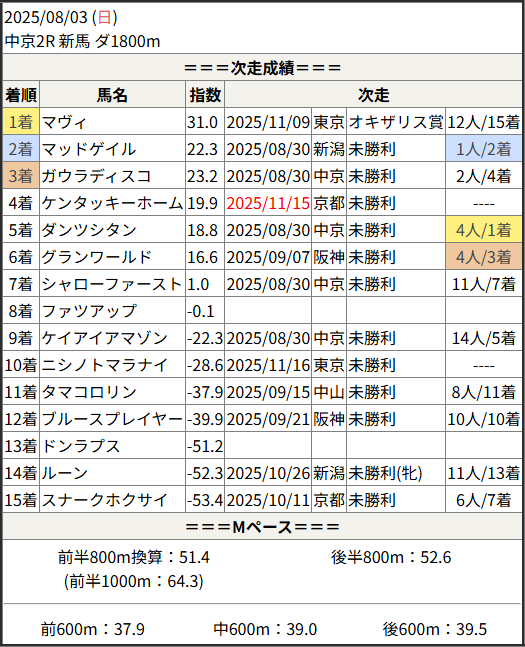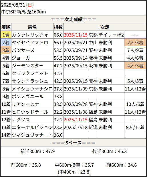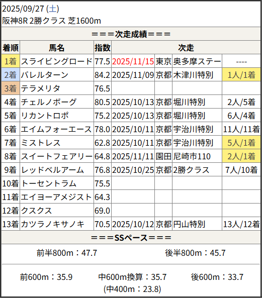 2025/11/15 京都8R 2勝クラス(牝):結果