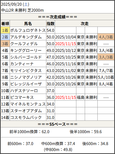 2025/11/15 京都11R デイリー杯2歳S:結果