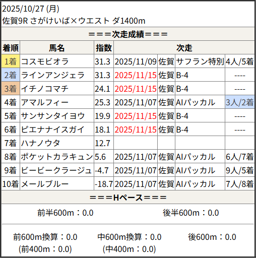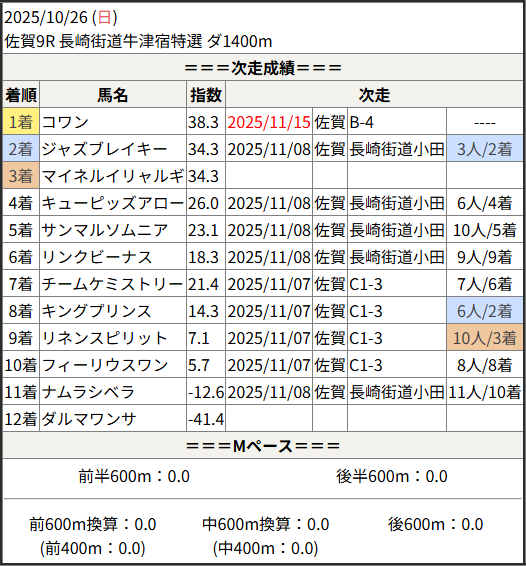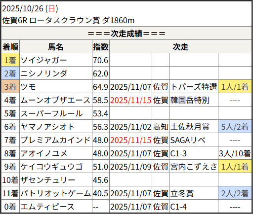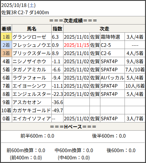 2025/11/15 佐賀4R 韓国岳特別:結果