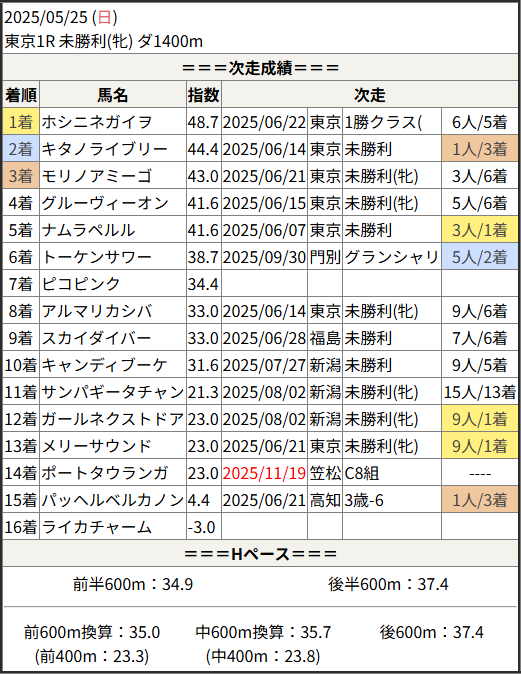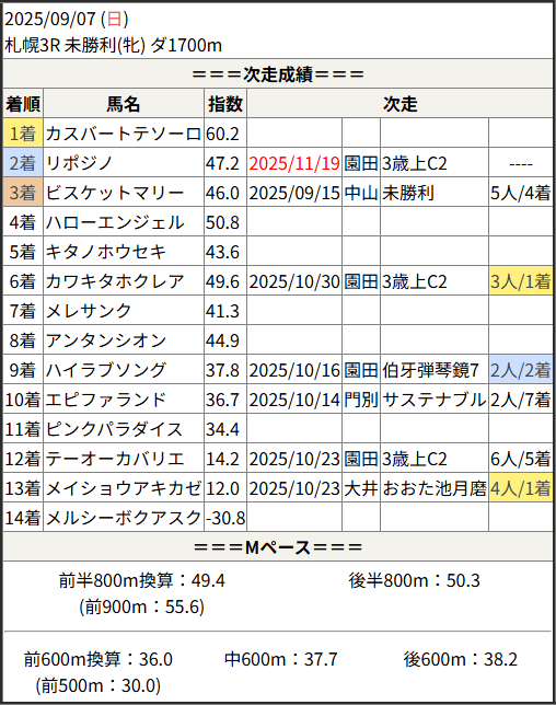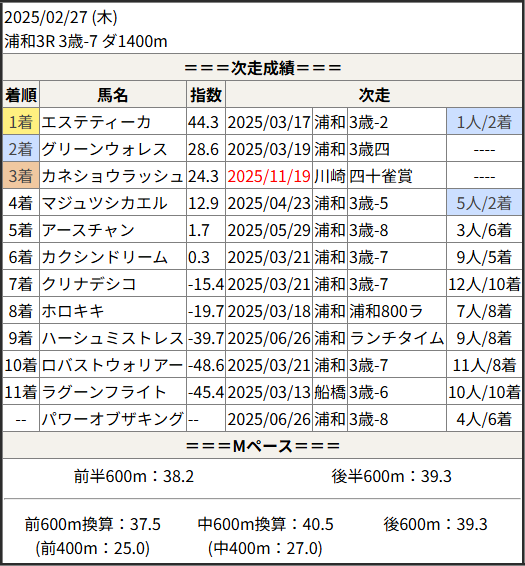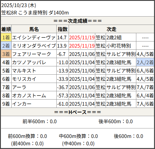 今回のメンバー相手に通用するかは、スピード指数表と合わせてご覧下さい。
