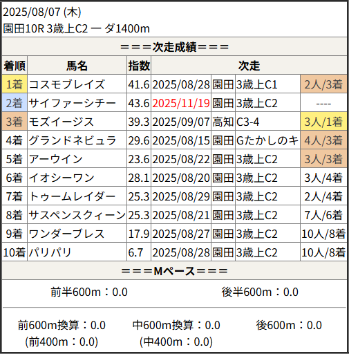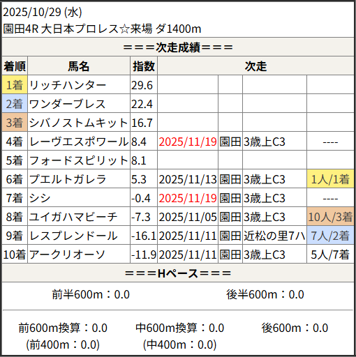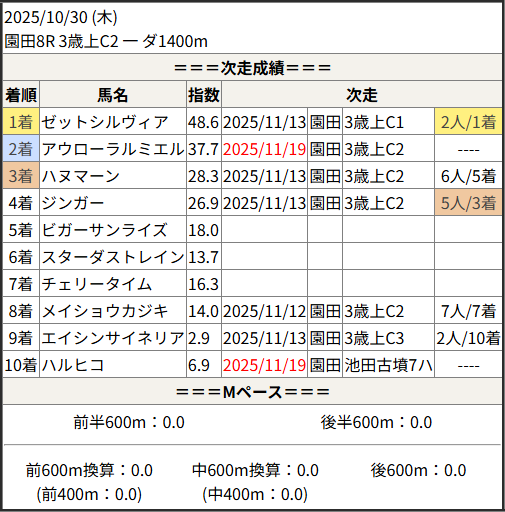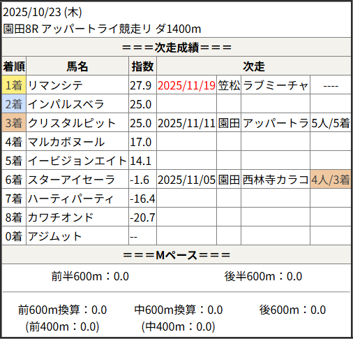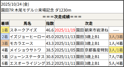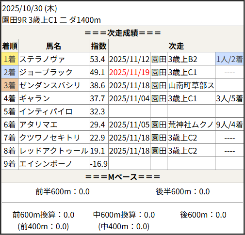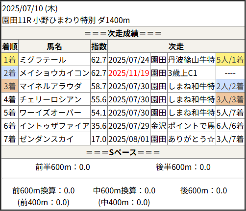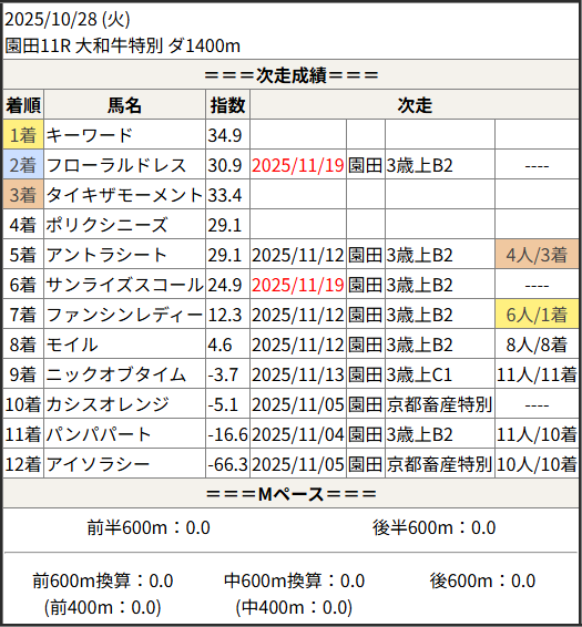 2025/11/19 園田11R 朝来市岩津ねぎ特別:結果