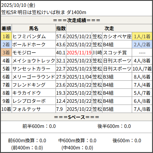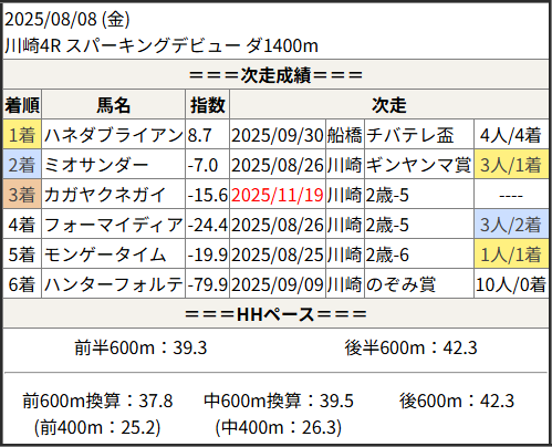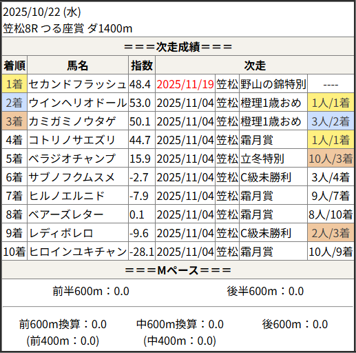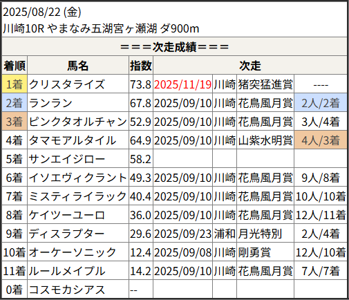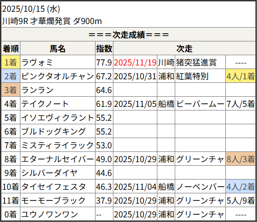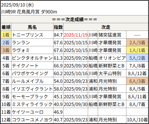 2025/11/19 川崎10R 猪突猛進賞:結果
