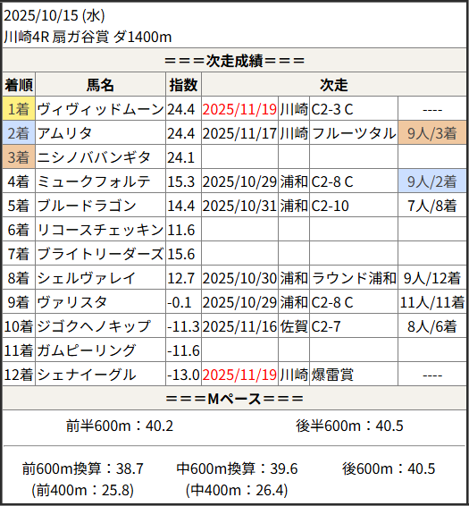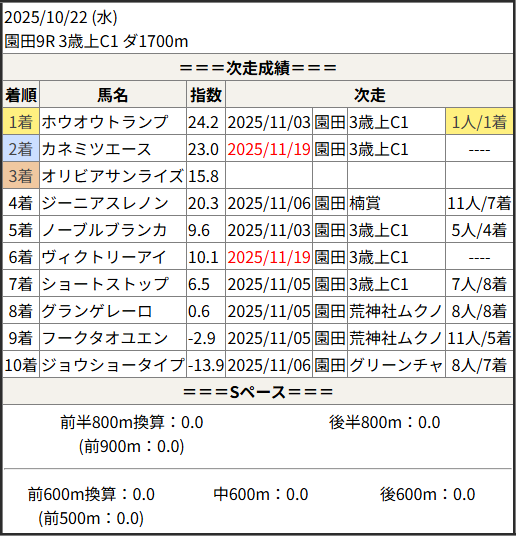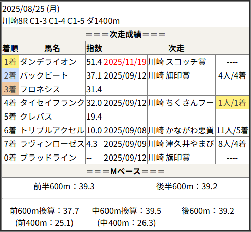2025/11/19 川崎6R C2-3 C2-4 C2-5:結果