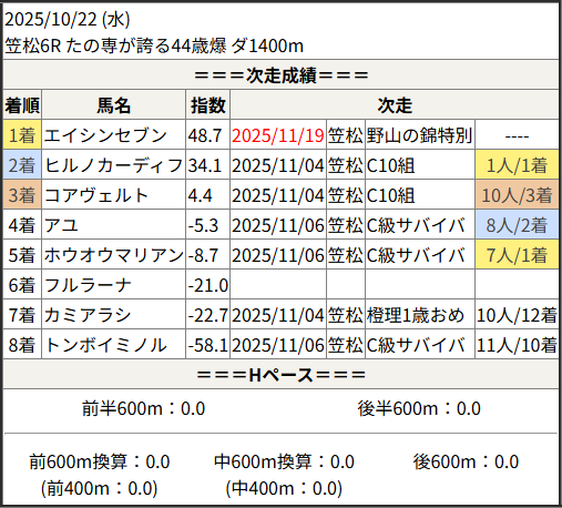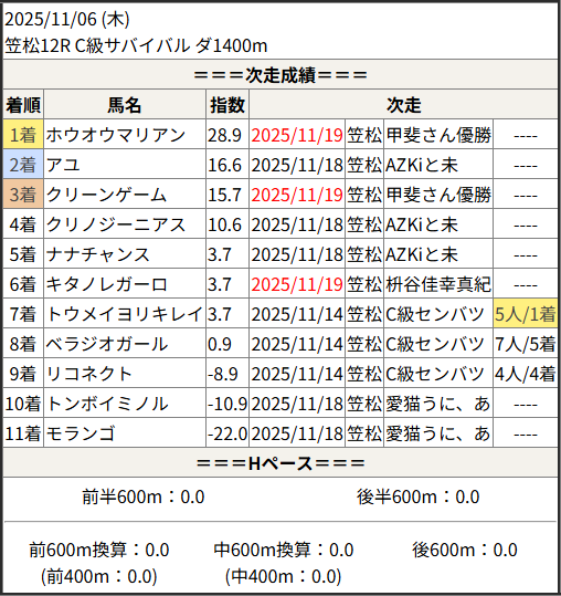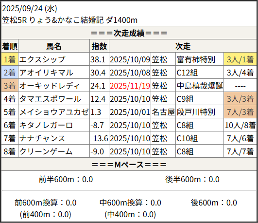 2025/11/19 笠松5R 甲斐さん優勝おめでと:結果