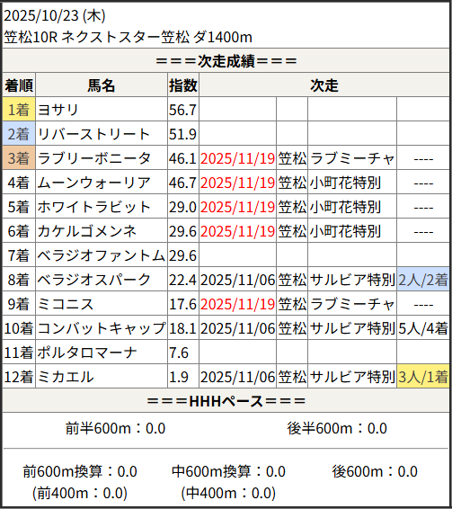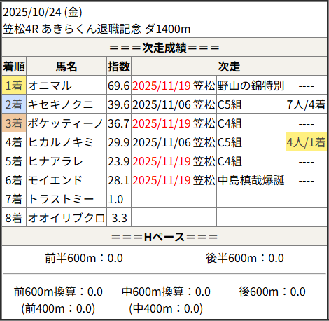 2025/11/19 笠松4R 枡谷佳幸真紀銀婚式お:結果