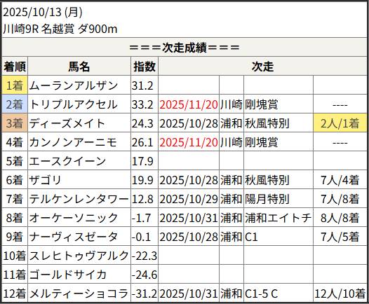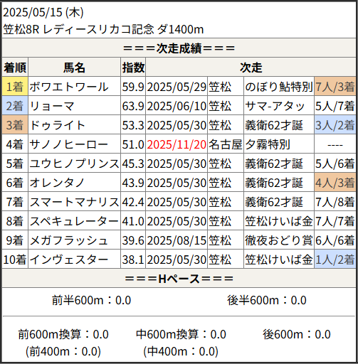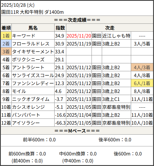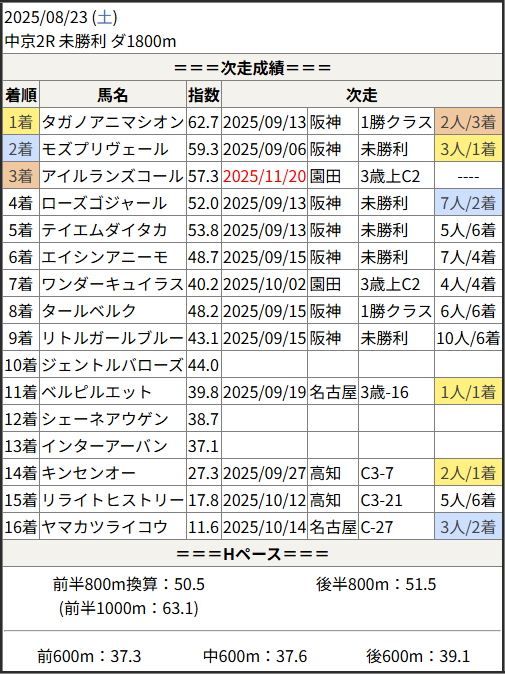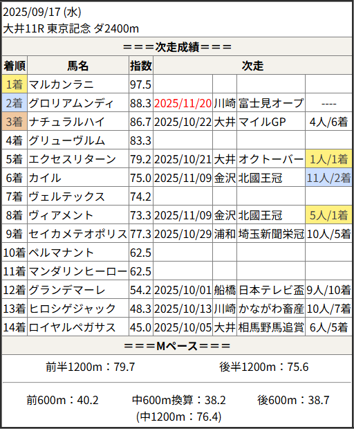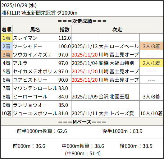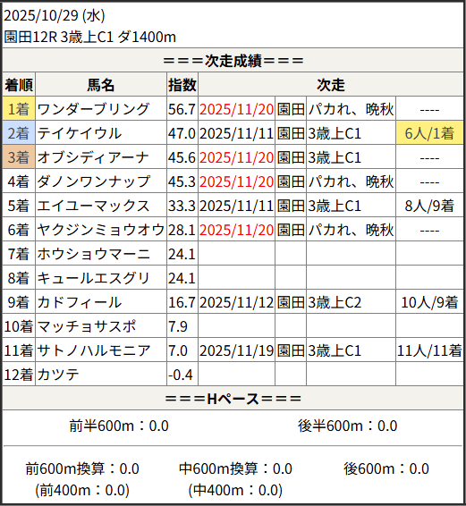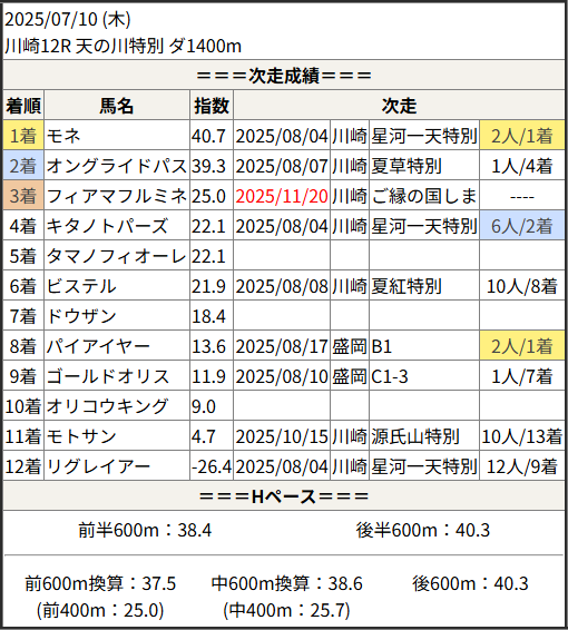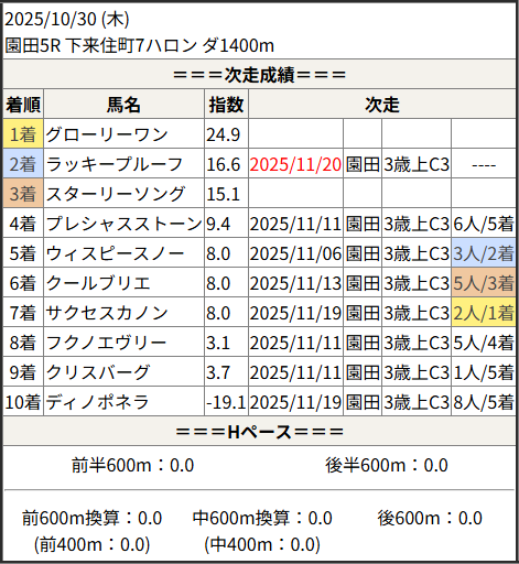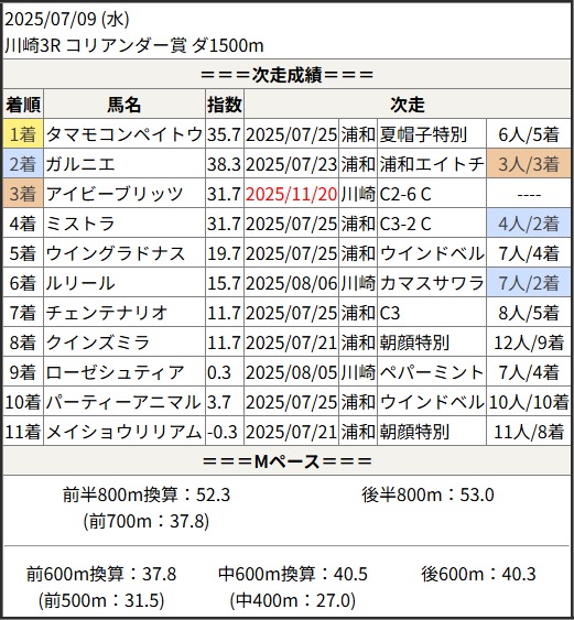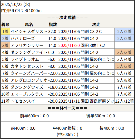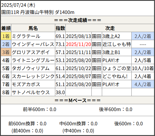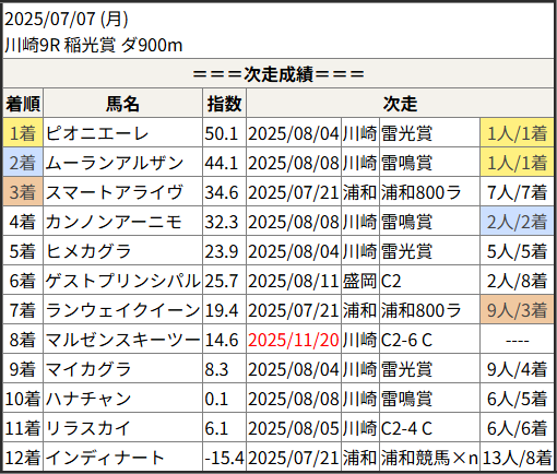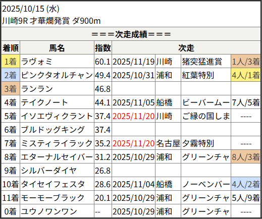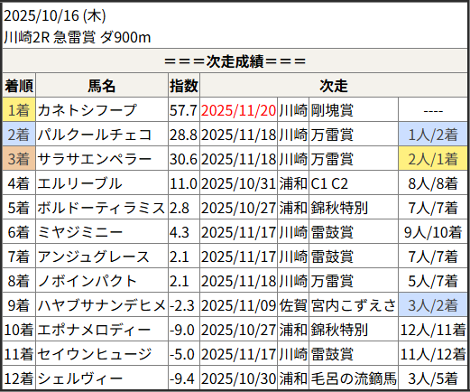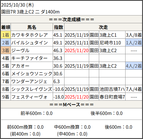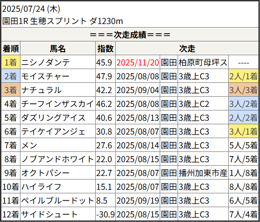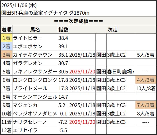 Home / 予想データ / 次走好走 / 2025/11/20 次走好走馬の目立つ組出身