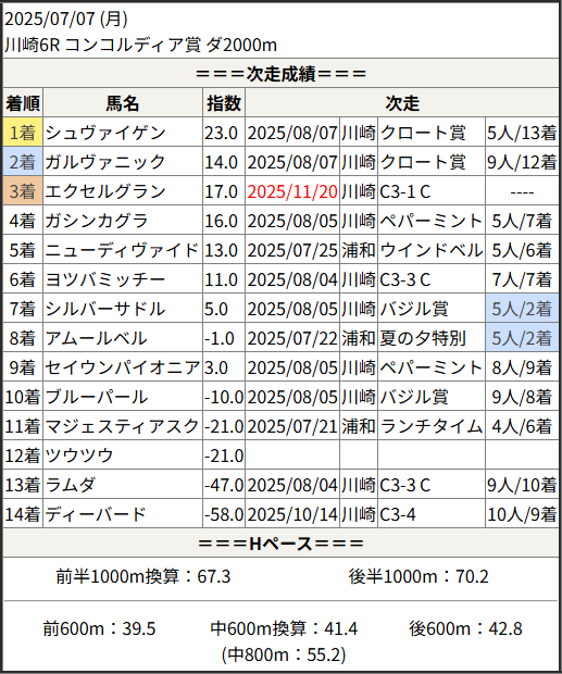 2025/11/20 川崎7R C2-6 C2-7 C2-8:結果