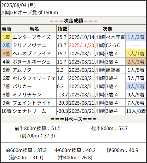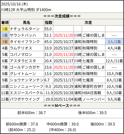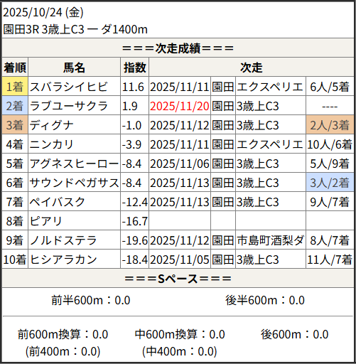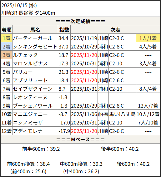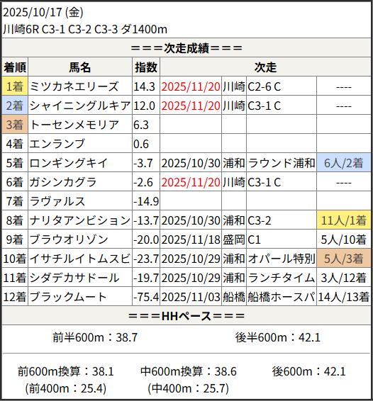 2025/11/20 川崎6R C3-1 C3-2:結果