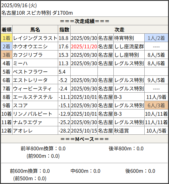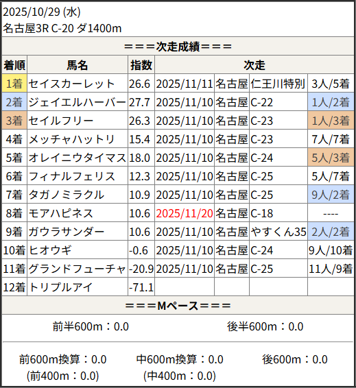 2025/11/20 名古屋12R しし座流星群特別:結果