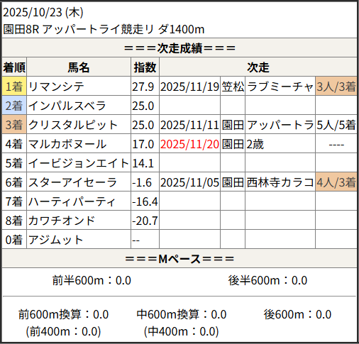2025/11/20 園田5R 柏原町母坪スプリ:結果