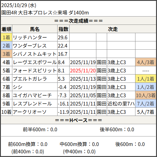 2025/11/20 園田4R 春日町鹿場7ハロン:結果