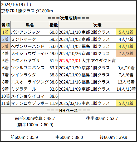 今回のメンバー相手に通用するかは、スピード指数表と合わせてご覧下さい。