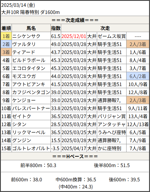 2025/12/01 大井9R カノープス賞:結果