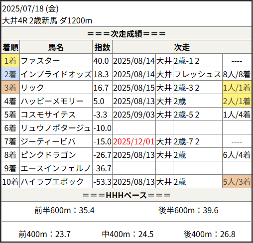 2025/12/01 大井2R 2歳-7 2歳-8:結果