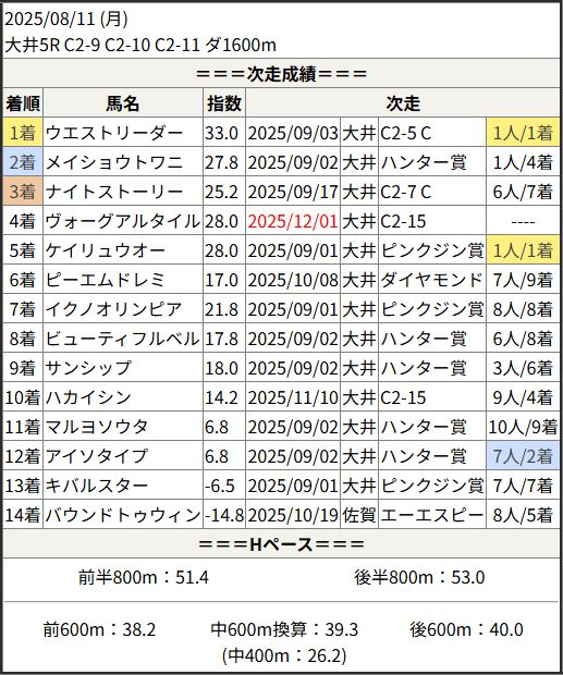 2025/12/01 大井6R C2-15 C2-16:結果