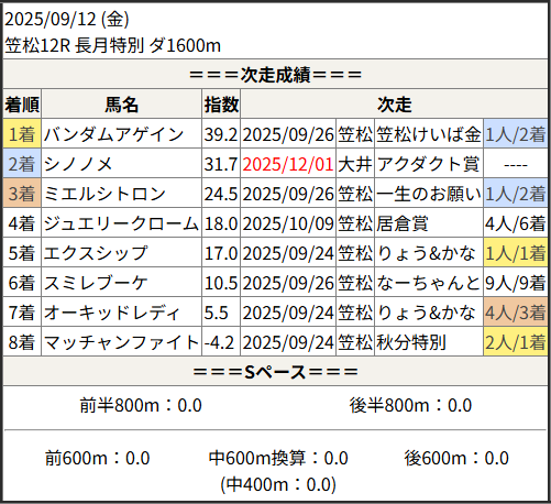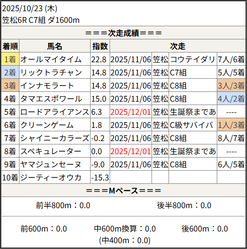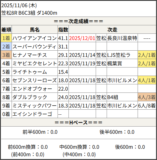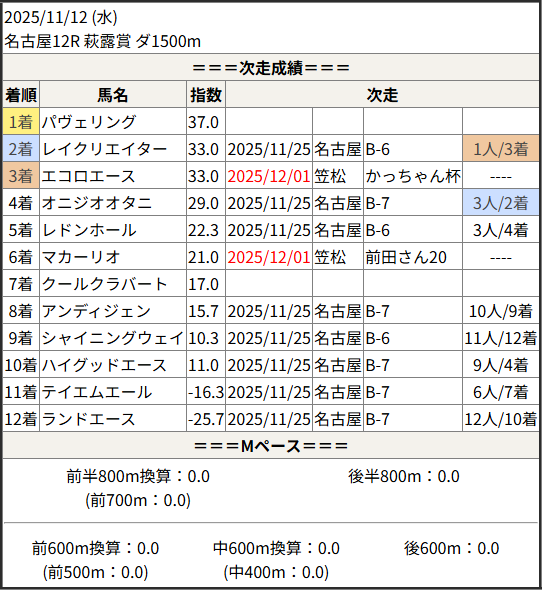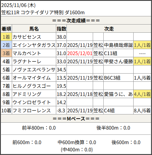 2025/12/01 笠松6R かっちゃん杯:結果
