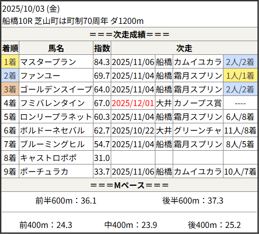 2025/12/01 笠松2R C10組:結果