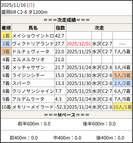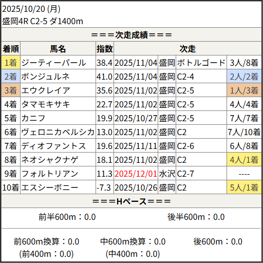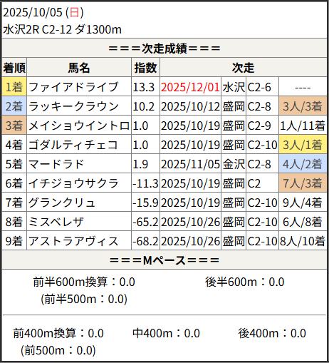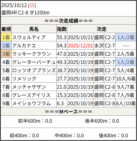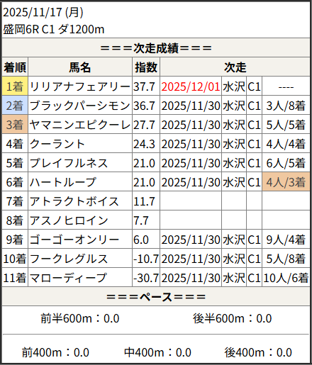 2025/12/01 水沢4R C2-6:結果