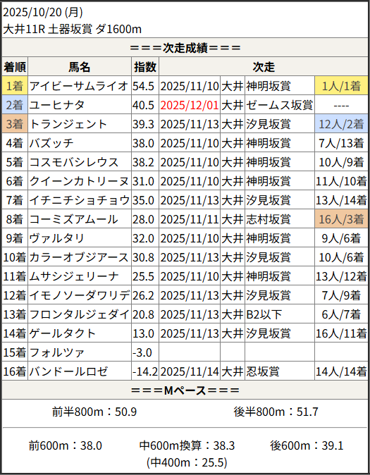 2025/12/01 大井8R アクダクト賞:結果