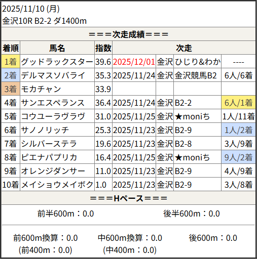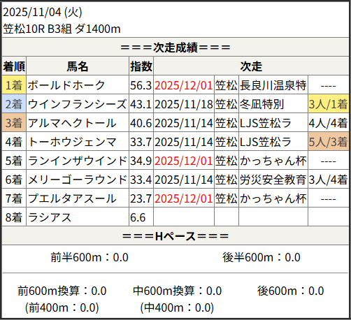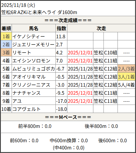 2025/12/01 笠松1R C11組:結果