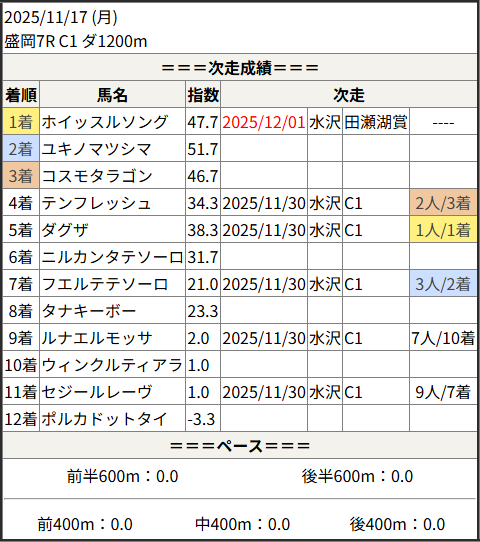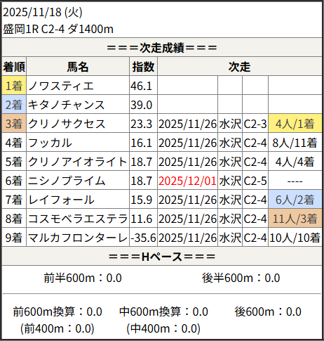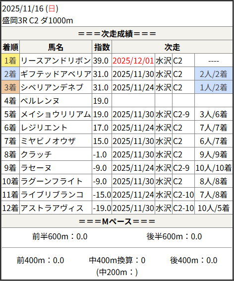 2025/12/01 水沢1R C2:結果