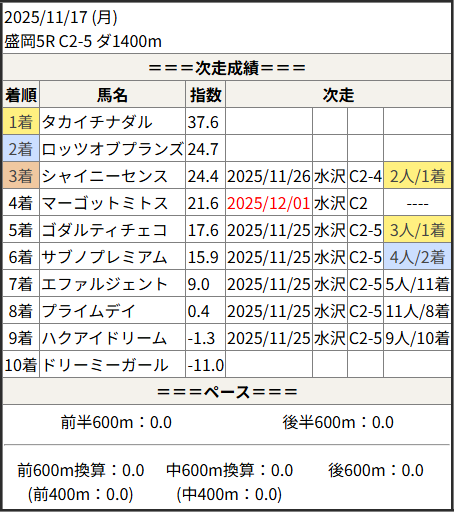 2025/12/01 水沢5R C2-5:結果