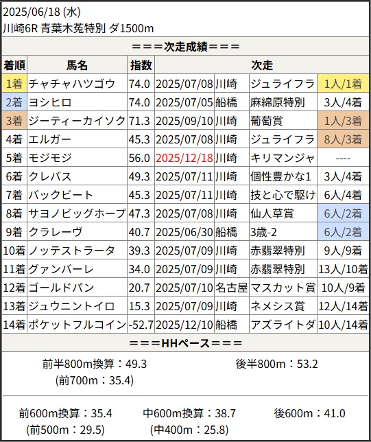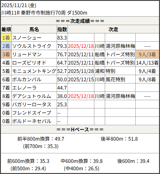 今回のメンバー相手に通用するかは、スピード指数表と合わせてご覧下さい。