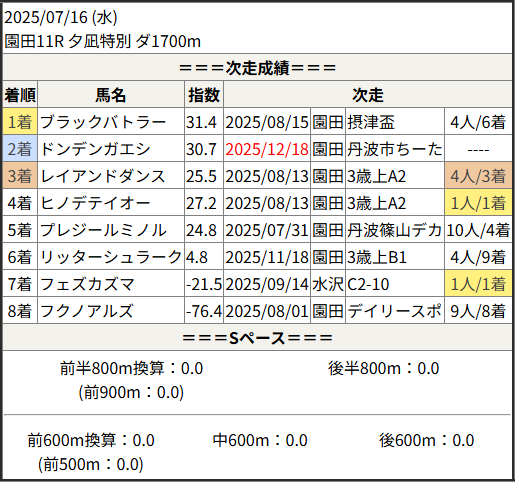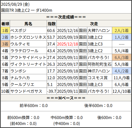 2025/12/18 園田7R サザンカ賞:結果