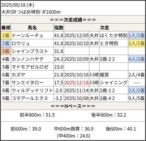 2025/12/18 川崎9R シャイニングドリーム:結果