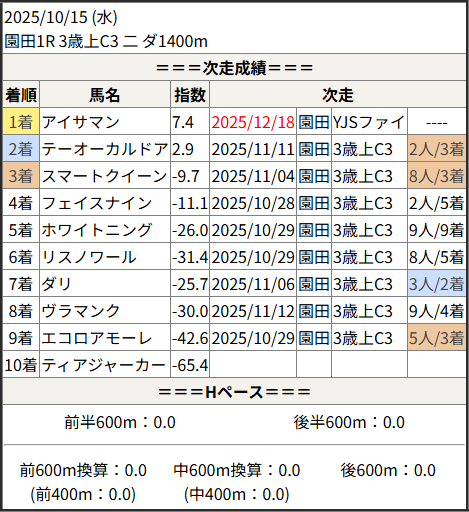 2025/12/18 園田2R 3歳上C3 二:結果