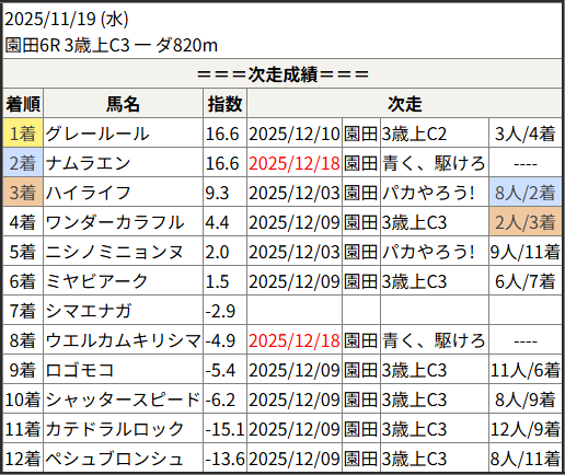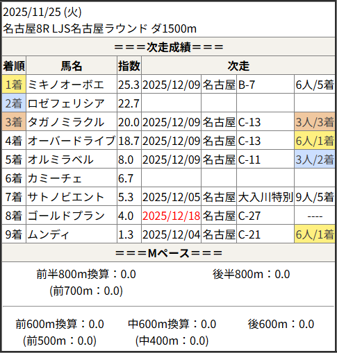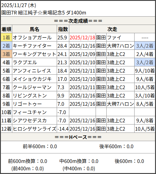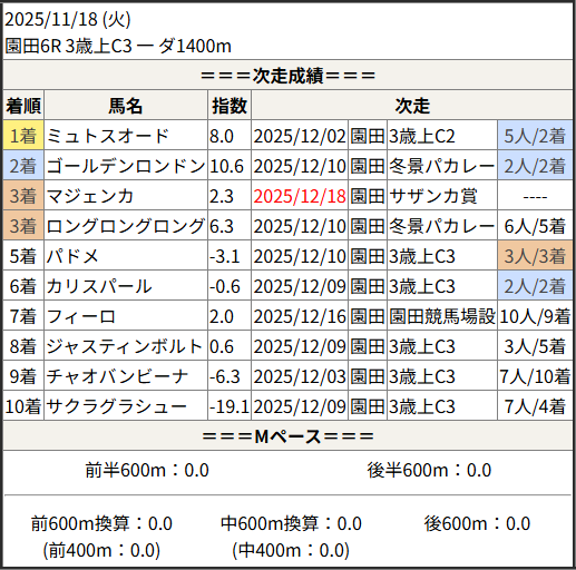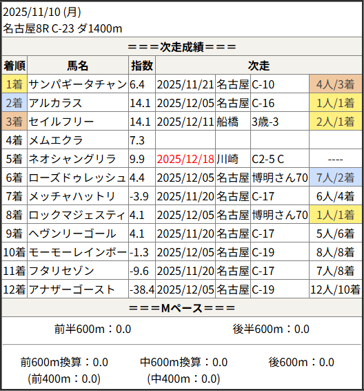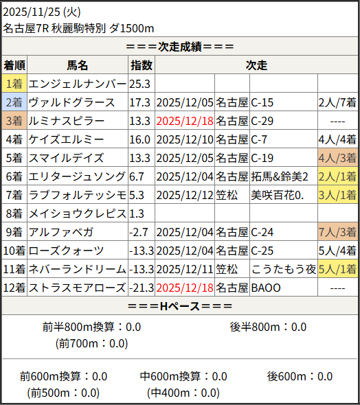 2025/12/18 名古屋6R C-27:結果