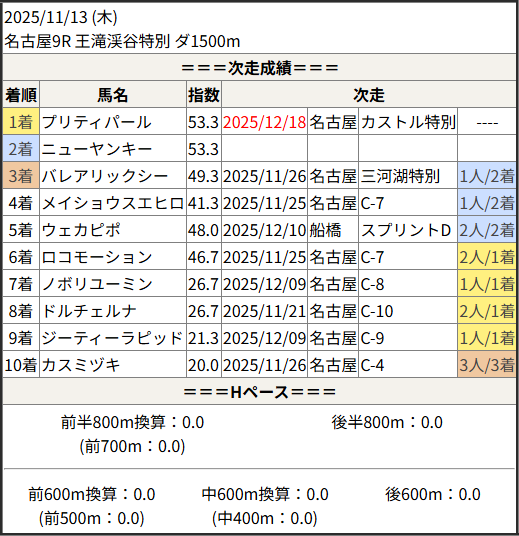 2025/12/18 名古屋10R カストル特別:結果