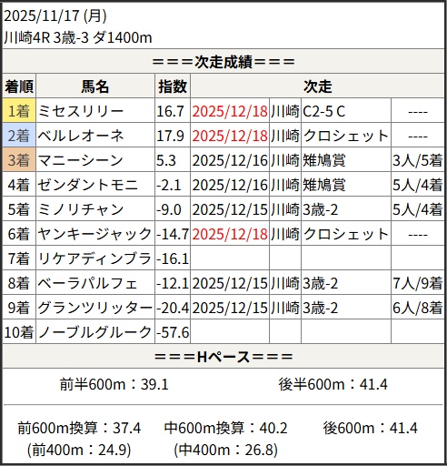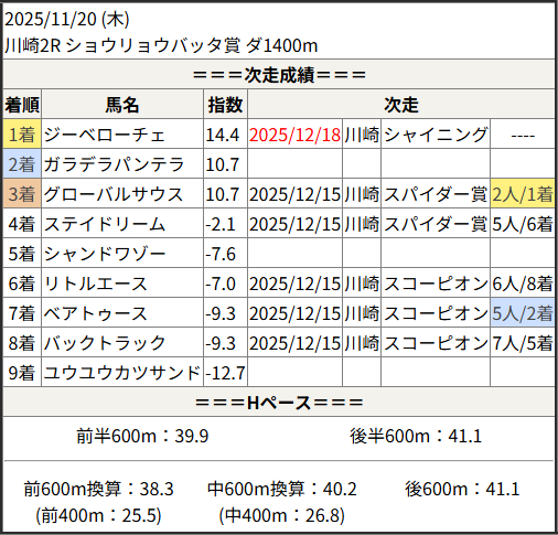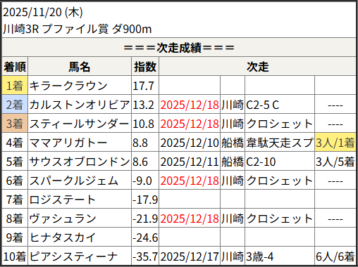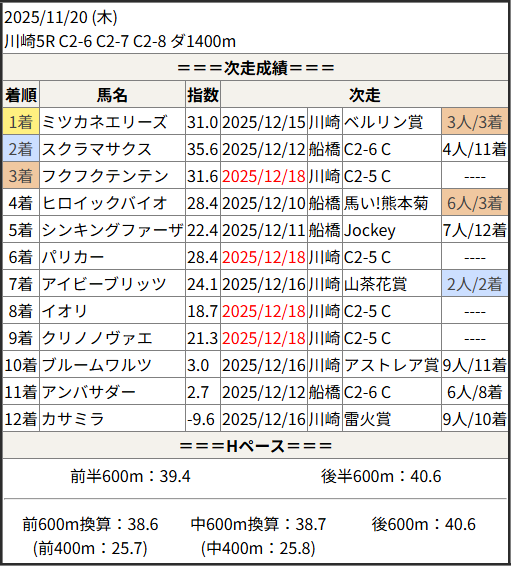 2025/12/18 川崎6R C2-5 C2-6 C2-7:結果