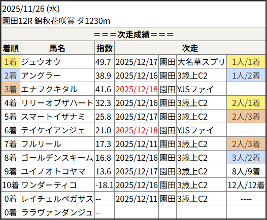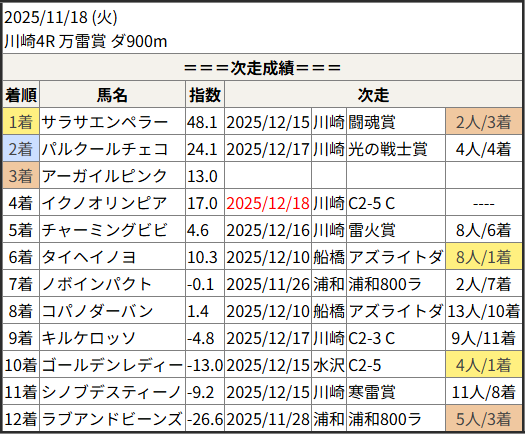 2025/12/18 川崎12R キリマンジャロ賞:結果