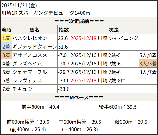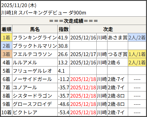 2025/12/18 川崎1R 2歳-8ロ:結果