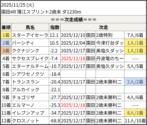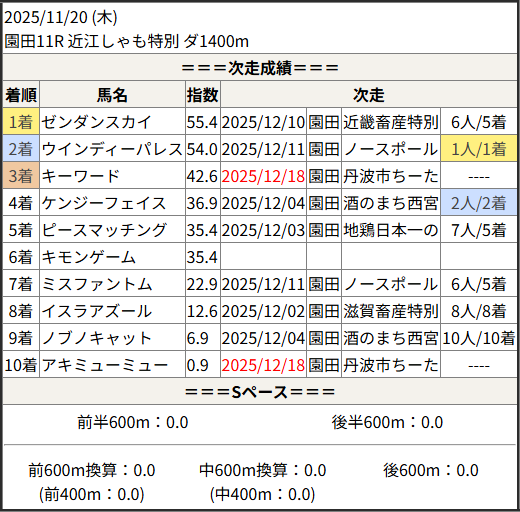 2025/12/18 園田4R 丹波竜のちーたん☆来:結果