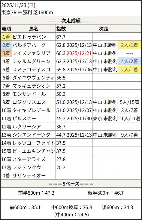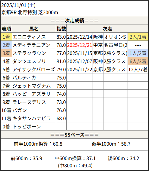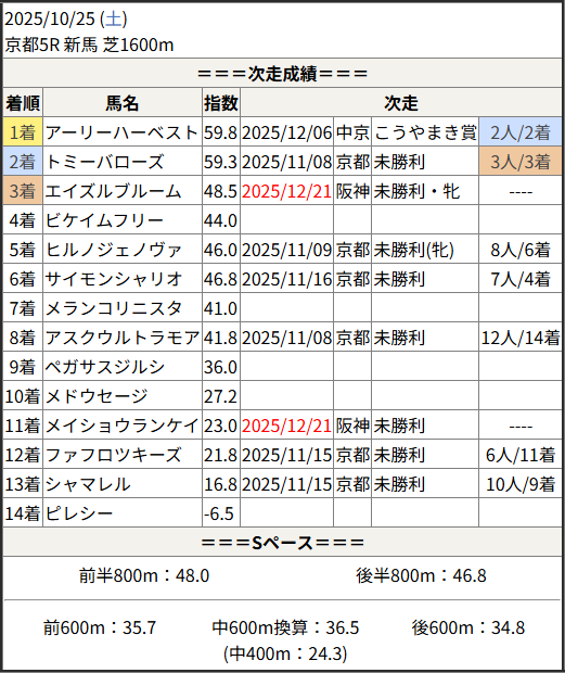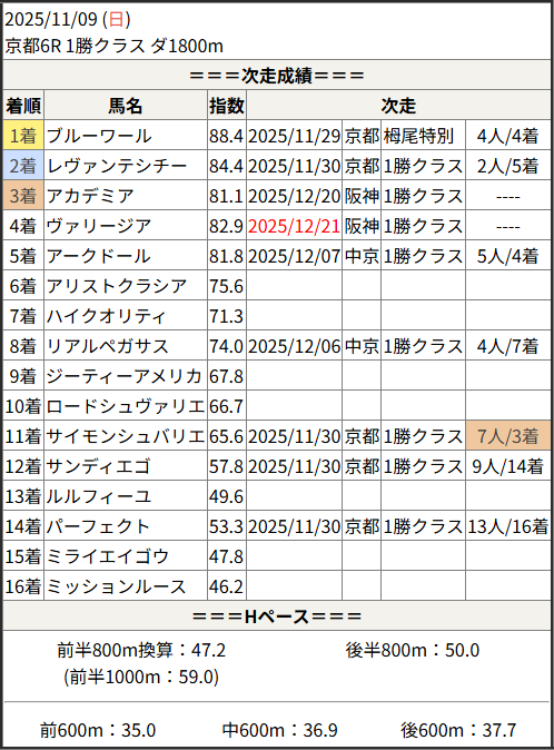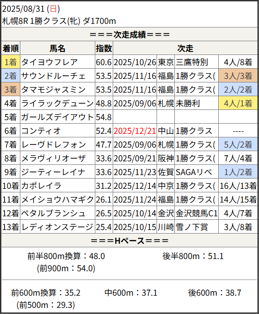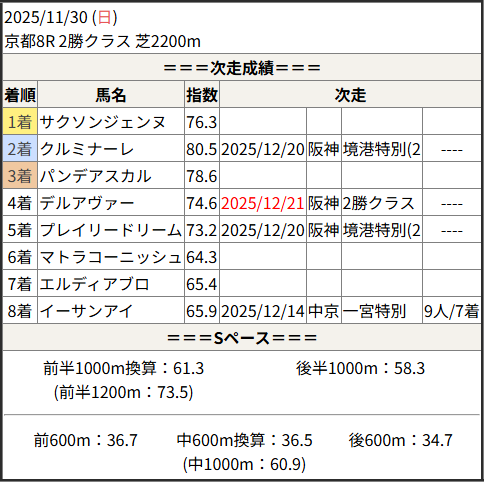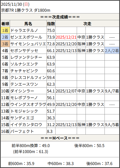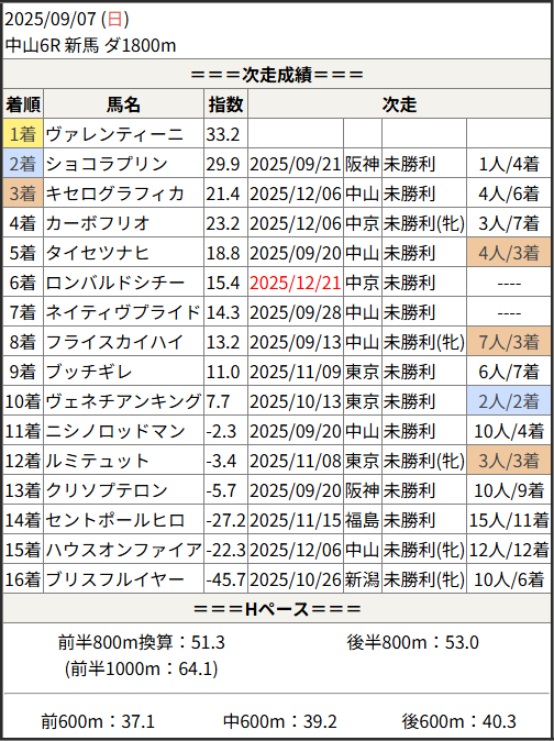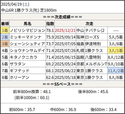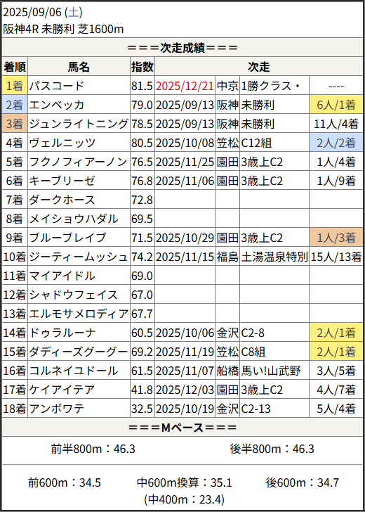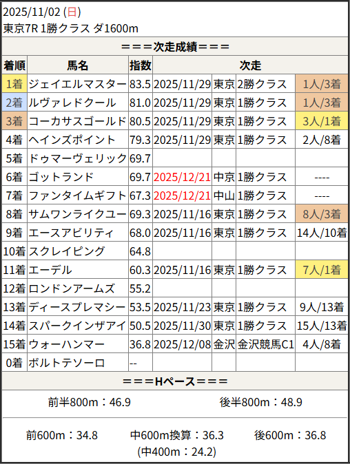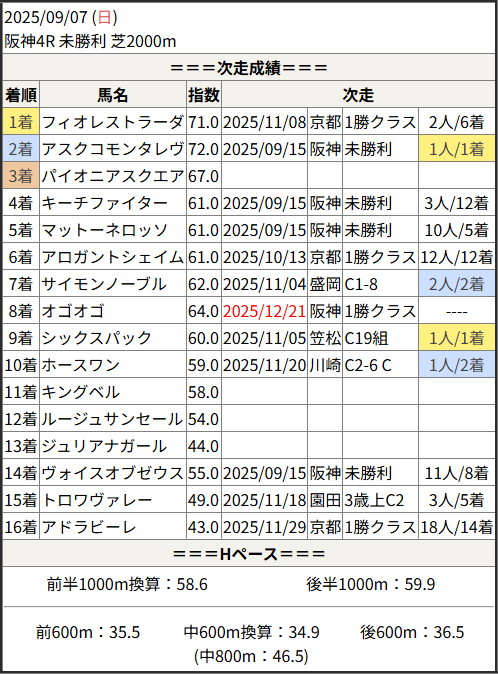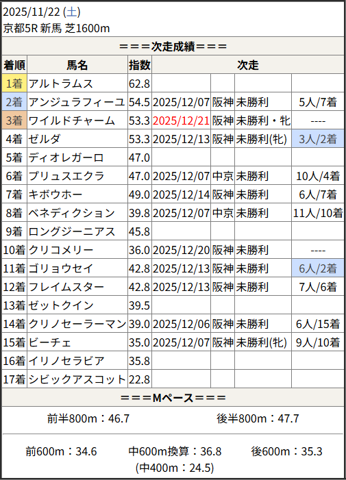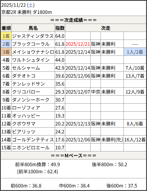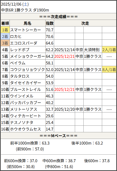 今回のメンバー相手に通用するかは、スピード指数表と合わせてご覧下さい。