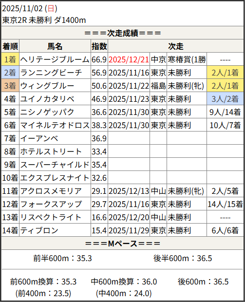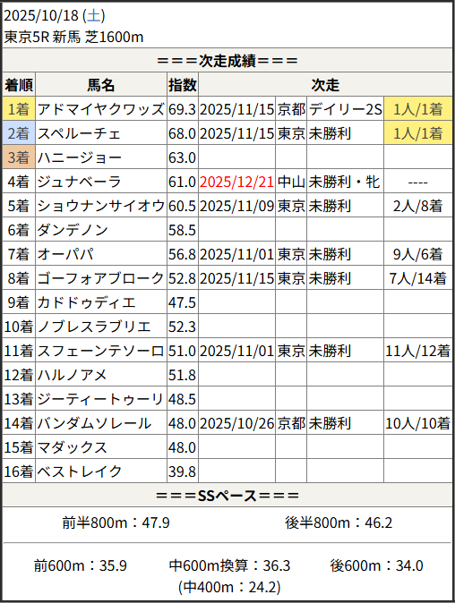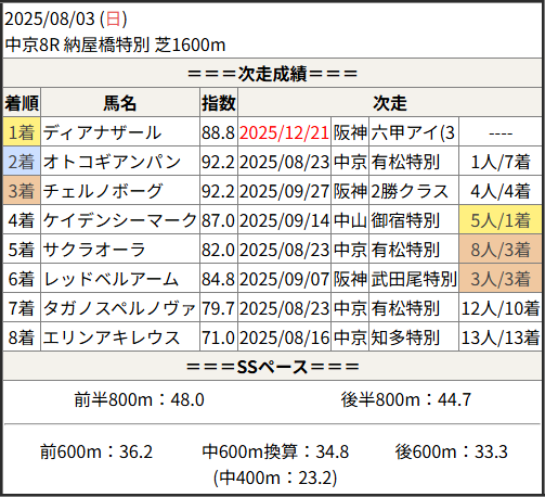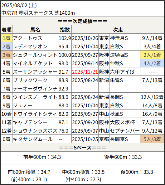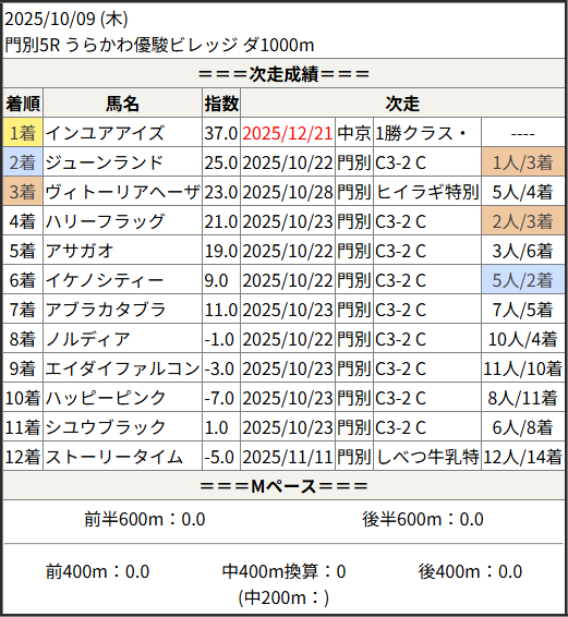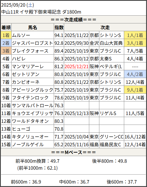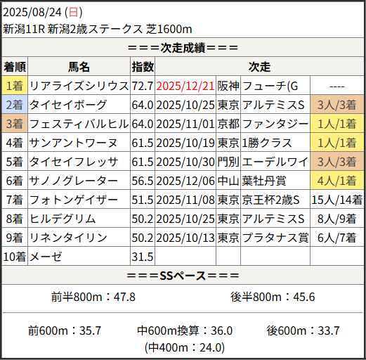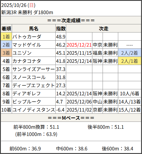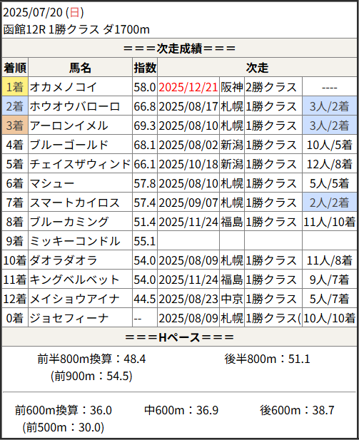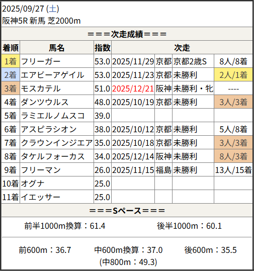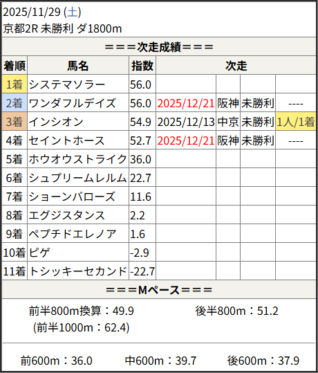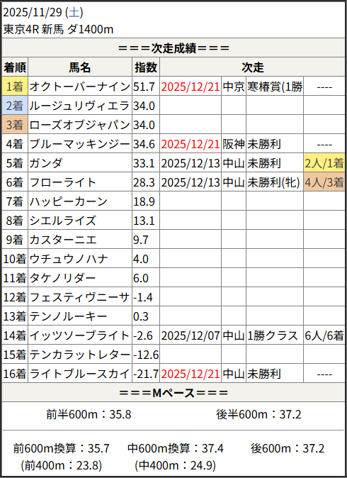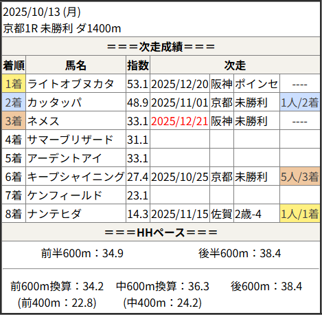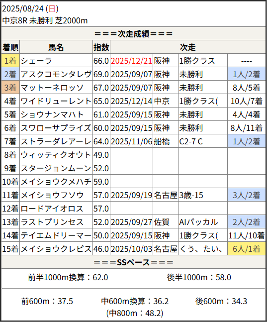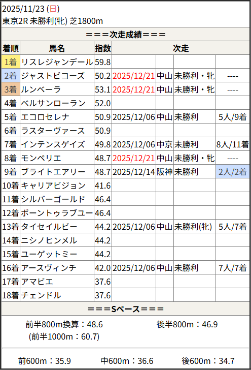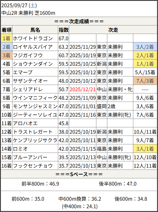 今回のメンバー相手に通用するかは、スピード指数表と合わせてご覧下さい。